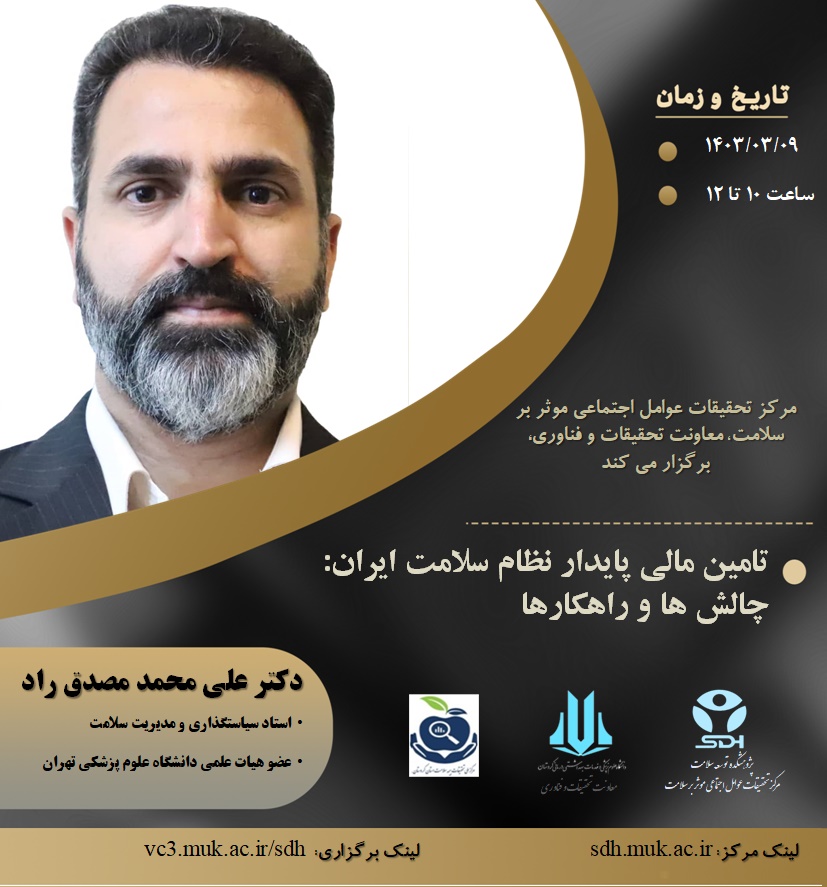 مرکز تحقیقات عوامل اجتماعی موثر بر سلامت، معاونت تحقیقات و فناوری دانشگاه علوم پزشکی کردستان با همکاری مرکز ملی تحقیقات بیمه سلامت استان کردستان برگزار می نماید.