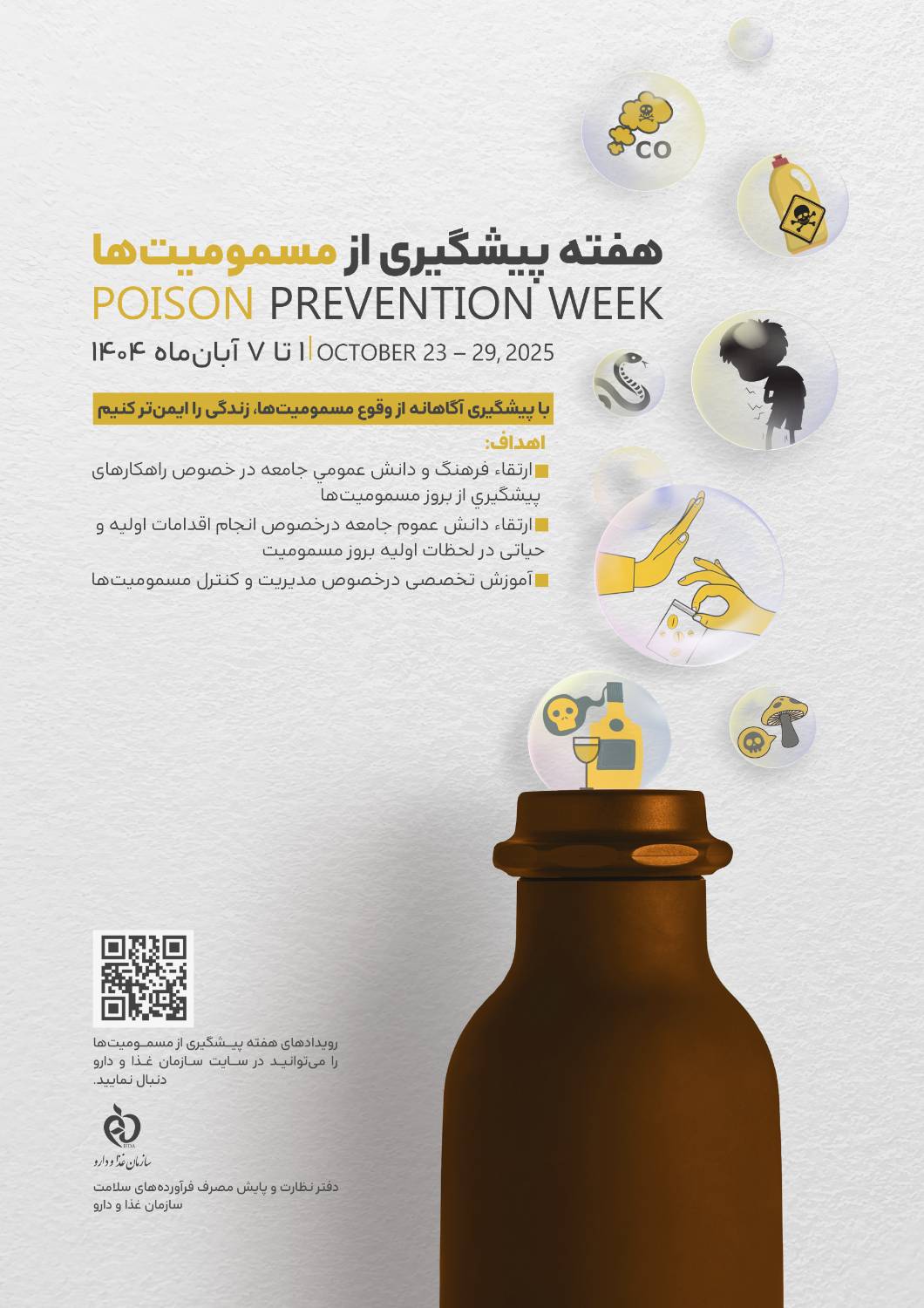سرپرست معاونت غذا و داروی دانشگاه با اشاره به انتشار مجموعه پوسترهای آموزشی در زمینههای مختلف مسمومیت از جمله مسمومیت با الکل، شویندهها، قرص برنج، مواد مخدر و داروها، خاطرنشان کرد: این محتواها در مراکز درمانی، پایگاههای سلامت و فضای مجازی توزیع شده است.