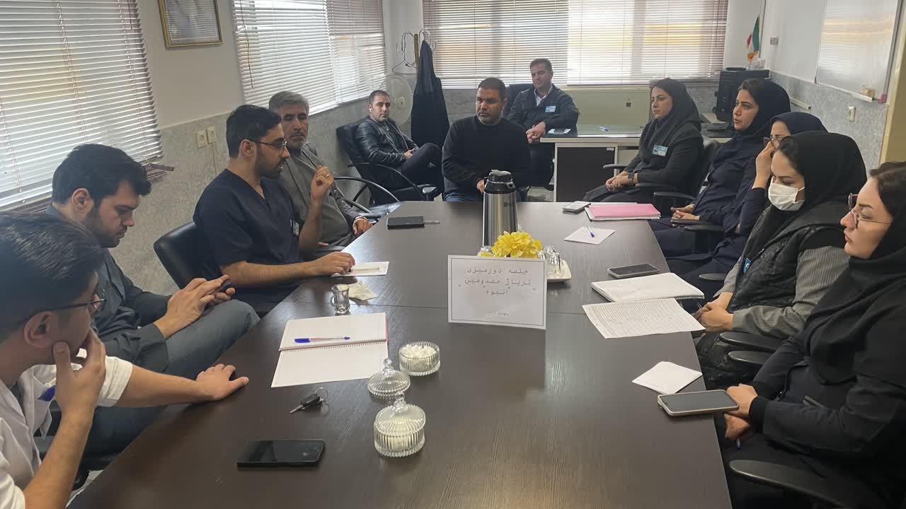 کمیته بحران ومانور دور میزی با حضور دکتر حاجیان ریاست بیمارستان ، آقای محمودی مدیر بیمارستان وتیم بحران به منظور تقویت ، شناسایی مشکلات وچالشها و آمادگی در برابرحوادث مانور دور میزی مدیریت بحران در دفتر ریاست بیمارستان مرکزی فرماندهی در حوادث وبلایا برگزار شد.