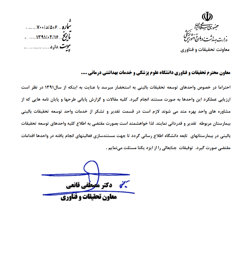 »» 1. مبنای فعالیت واحد توسعه تحقیقات بالینی بیمارستان، آییننامه ابلاغی شماره 499/پ87ص ـ 1387/11/29 معاونت محترم تحقیقات و فناوری وزارت بهداشت میباشد. »» 2. اعضای هیأت علمی، متخصصین، کارکنان و دانشجویان دانشگاه در چارچوب مقررات و دستورالعملهای پژوهشی، و متناسب با تخصص و وظایف علمی خود میتوانند طرح پژوهشی ارائه کنند »» 3. شورای پژوهشی واحد ماهیانه برگزار میشود و درصورت لزوم و به صلاحدید مسئول واحد، جلسات فوقالعاده برگزار خواهد شد. »» 4. جلسات با حضور نصف بعلاوه یک اعضا رسمیت مییابد و حضور رئیس شورا (یا جانشین ایشان) در جلسه الزامی است. »» 5. نسخهای از صورتجلسات شورا به معاونت پژوهشی دانشگاه ارسال خواهد شد. »» 6. مجریان پروپوزالهای مطرح شده در جلسات دو هفته فرصت دارند پروپوزال خود را اصلاح و به کارشناس واحد تحویل دهند. در غیر این صورت تعیین تکلیف پروپوزال منوط به طرح مجدد در شورا خواهد بود. »» 7. سقف بودجه طرحهای تحقیقاتی واحد از سوی معاونت پژوهشی دانشگاه اعلام و در سامانه پژوهشی دانشگاه درج میگردد. »» 8. درخصوص درج وابستگی سازمانی (Affiliation)، ملاک عمل دستورالعمل مندرج در سامانه پژوهشی دانشگاه است. »» 9. برای حفظ حقوق واحد، به استناد بخشنامه شماره 506/د/700 ـ 1391/2/16 معاونت محترم تحقیقات و فناوری وزارت متبوع، و تبصره 17 دستورالعمل اجرایی حمایت از فعالیتهای پژوهشی دانشگاه لازم است نویسندگان در تمامی پایاننامهها، گزارش نهایی طرحها، و مقالات منتشره که از «حمایت مالی» یا «مشاورههای واحد» یا «مستندات واحد مدارک پزشکی بیمارستان» بهرهمند میشوند، وابستگی خود را دقیقاً به واحد توسعه تحقیقات بالینی بیمارستان توحید اعلام نمایند (مثــــال)؛ یا اینکه در قسمت تقدیر و تشکر (Aknowledgement) مشخصاً از «واحد توسعه تحقیقات بالینی بیمارستان توحید» نام ببرند: فارسی: نویسندگان از حمایت (مالی و) مشاورهای واحد توسعه تحقیقات بالینی بیمارستان توحید سنندج سپاسگزاری میکنند. انگلیسی:
