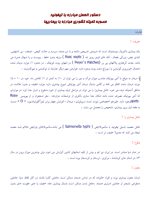 راهنمای کشوری مراقبت بیماری تب های راجعه
