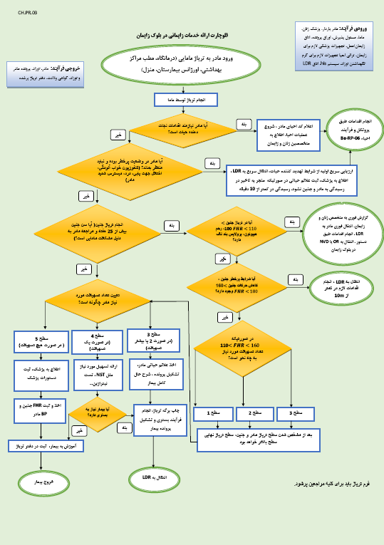 فلوچارت ارائه خدمات زایمانی در بلوک زایمان