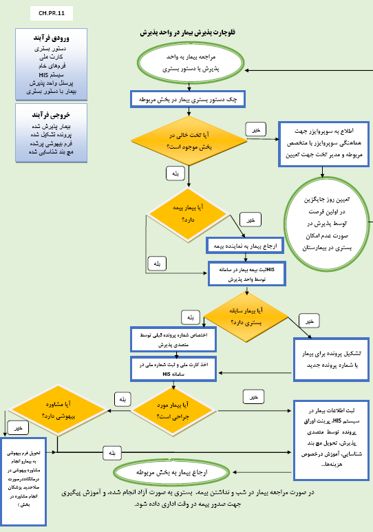 فلوچارت پذیرش بیماران در واحد پذیرش